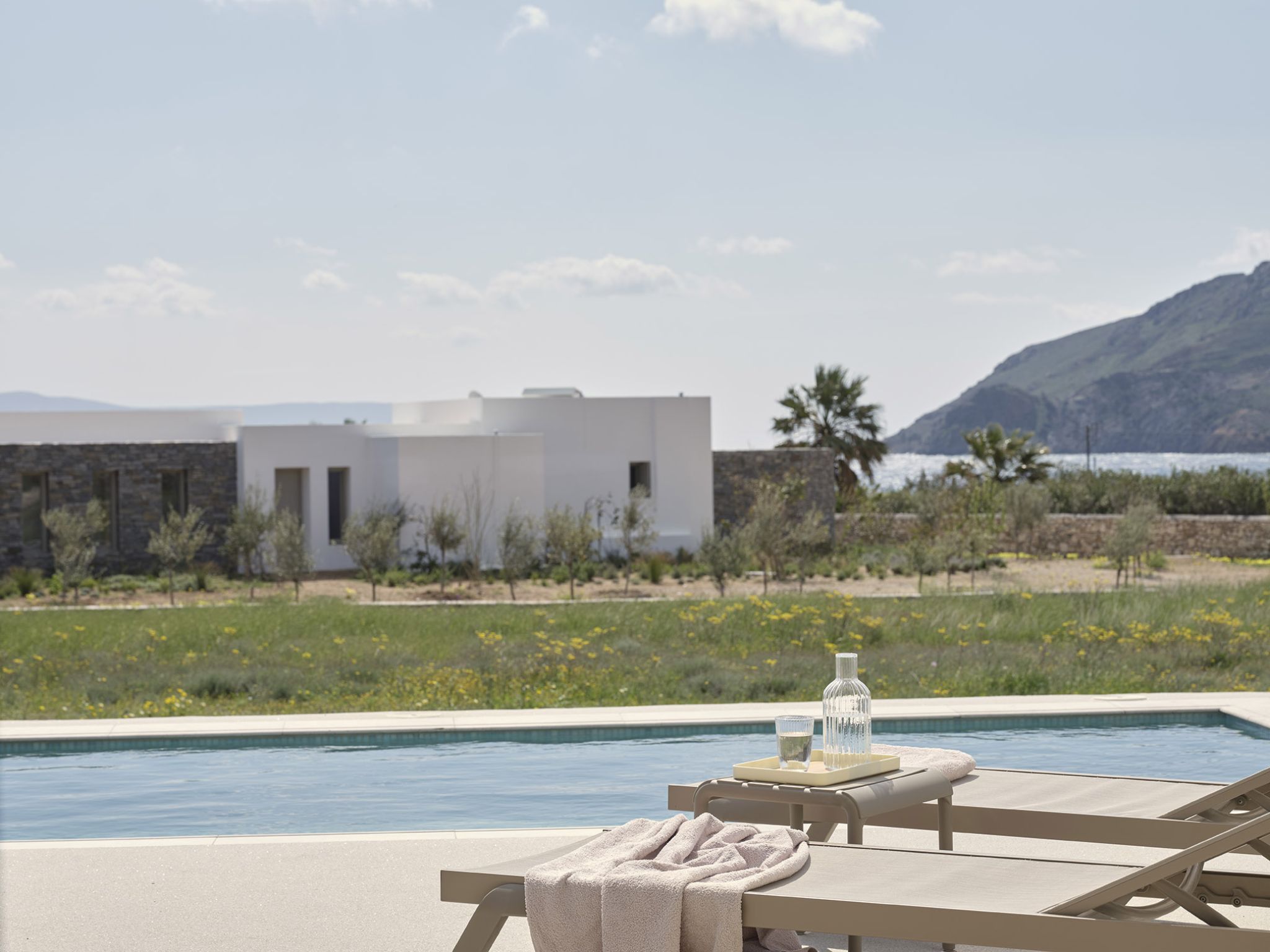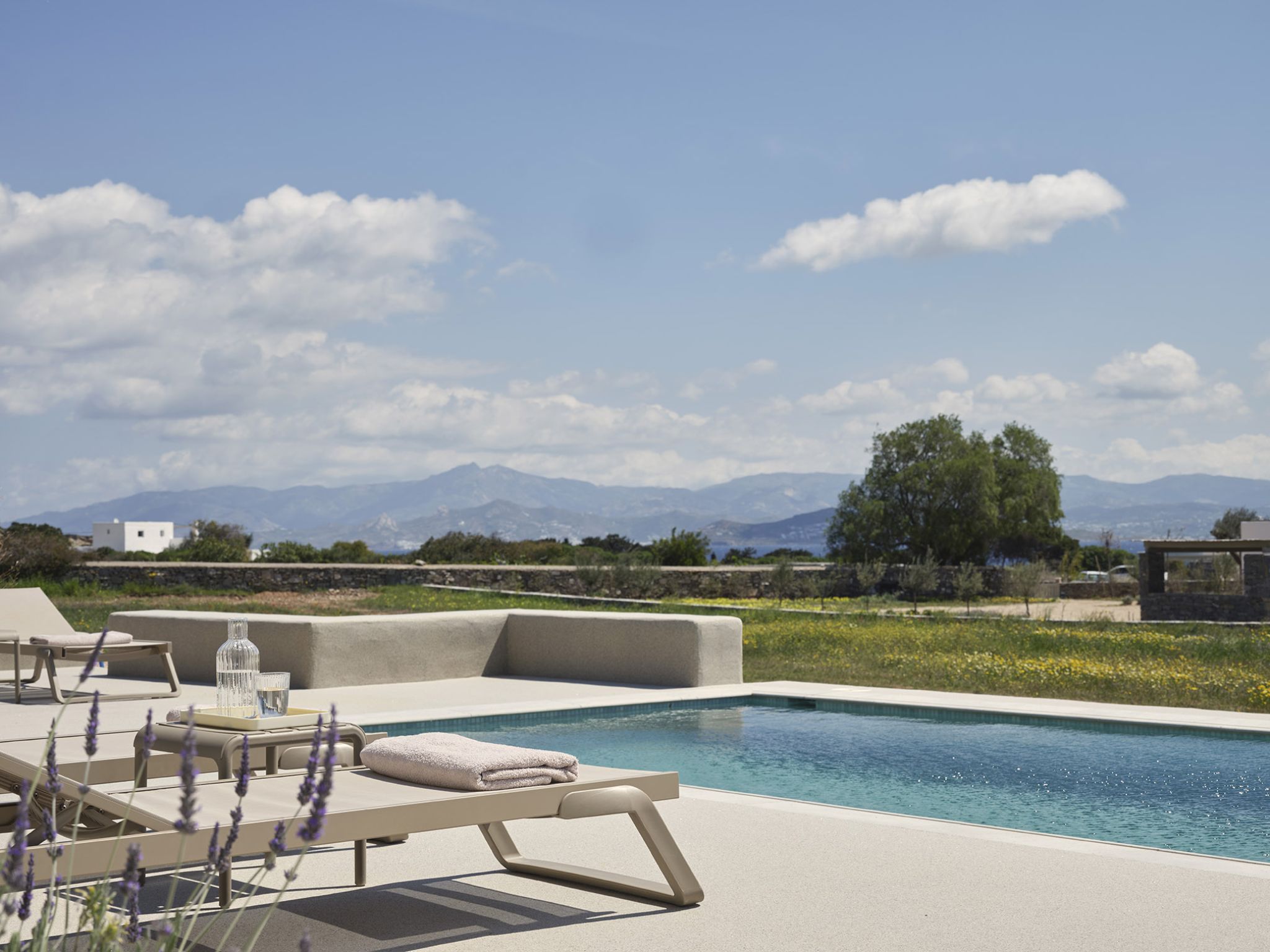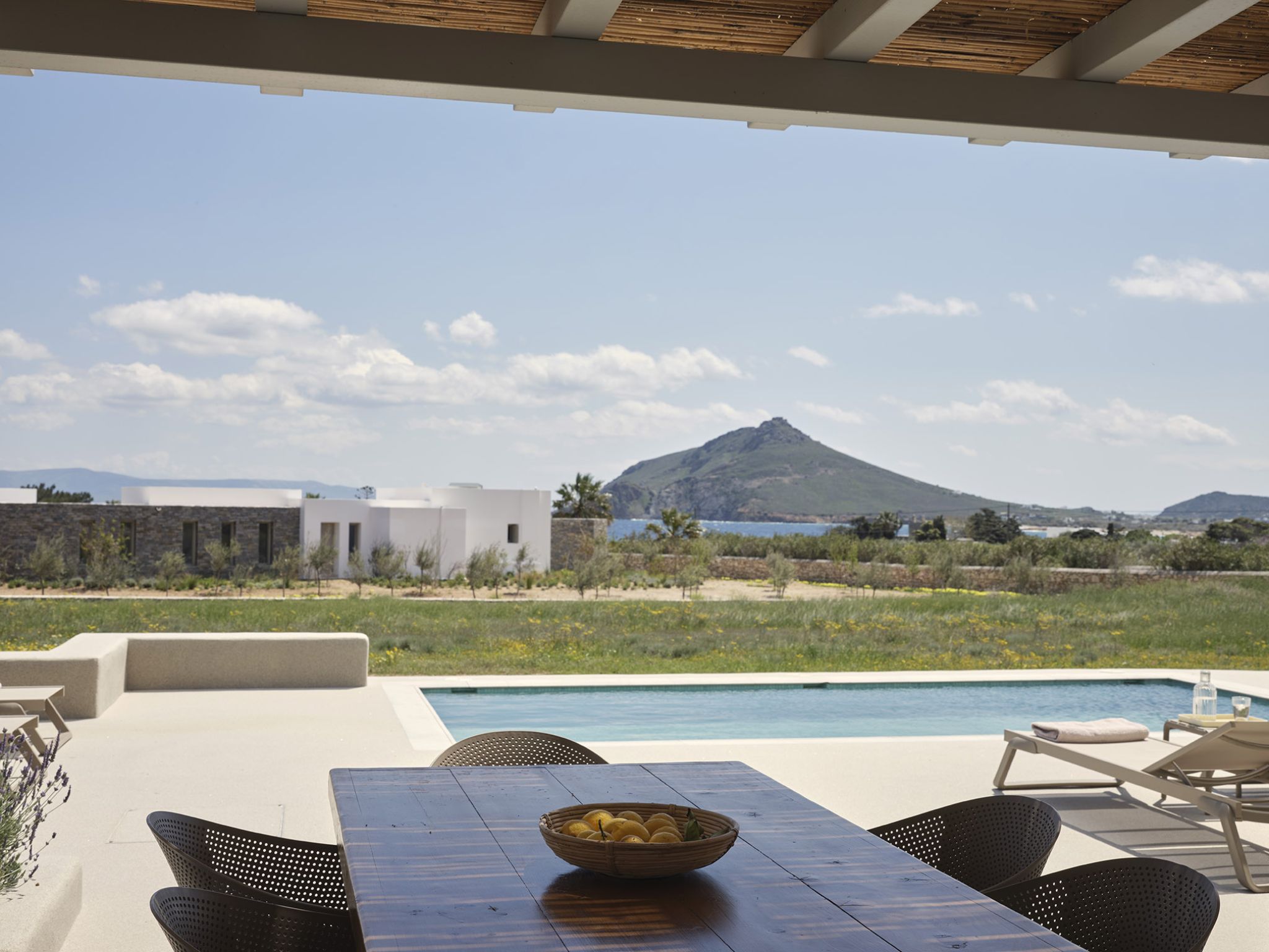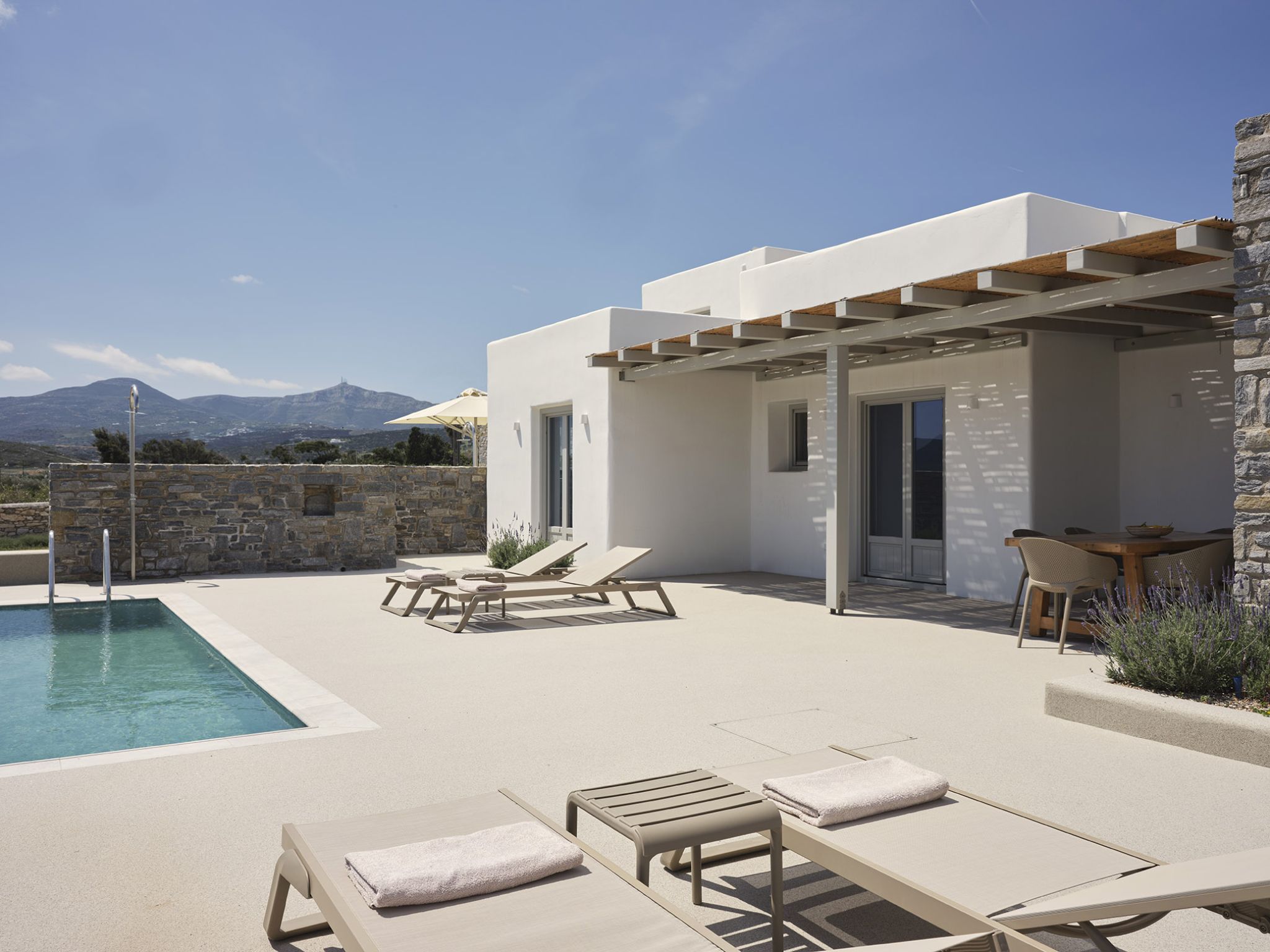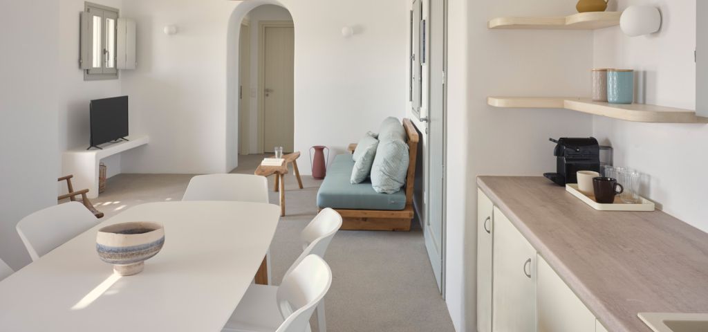 A ground floor villa that comprises of 2 separate units; the main Villa with 2 double bedrooms, 1 bathroom, a living area and fully equipped kitchen, which can accommodate up to 5 guests and an adjacent Suite that can accommodate 2 guests. The units have separate entrances and they both open out onto a spacious terrace with lounge and dining area and a private pool, perfect for relaxation.